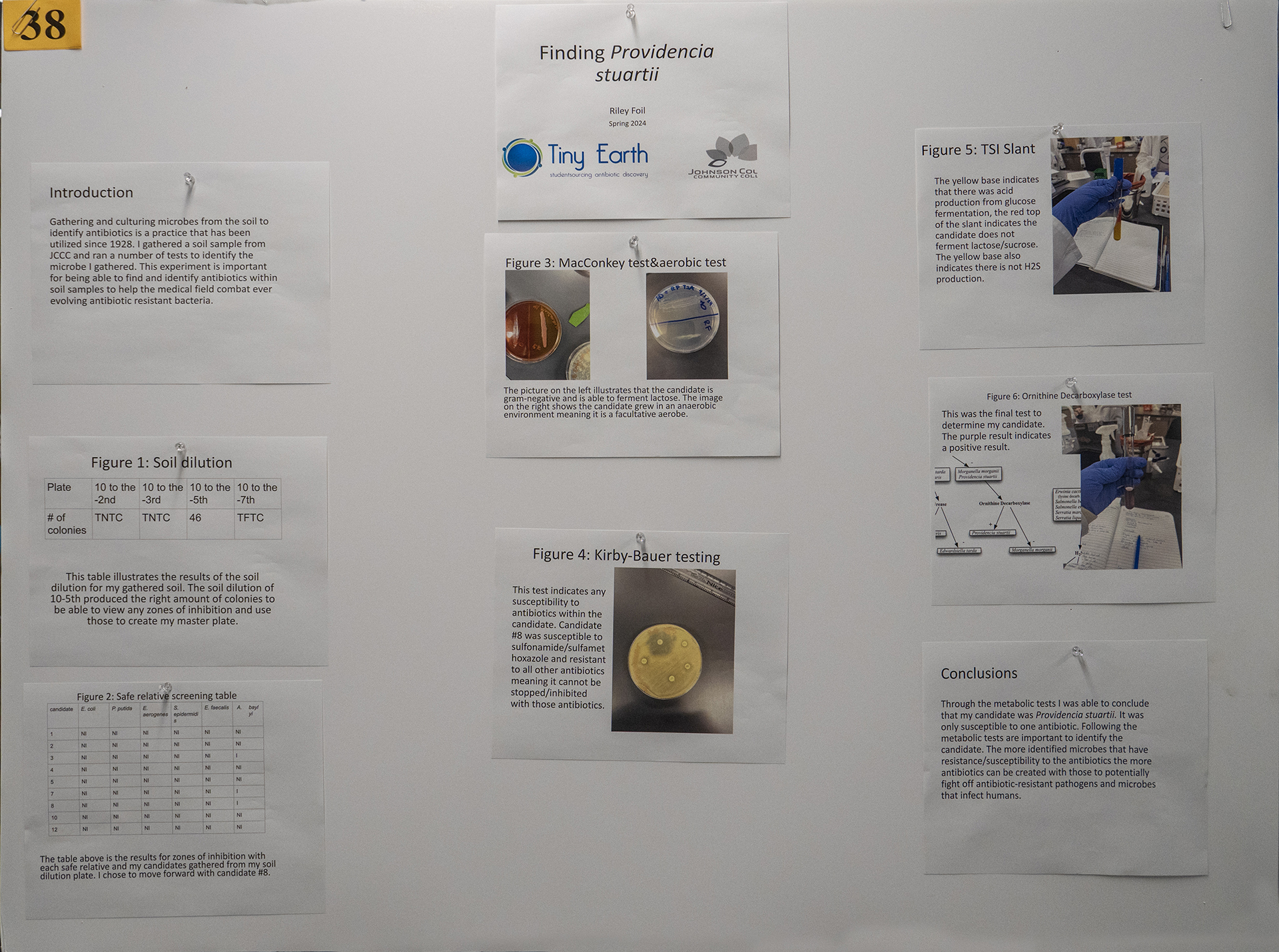 This semester in microbiology we have been gathering soil samples to isolate different strains of bacteria in hopes to find new antibiotics against safe relative strains of ESKAPE pathogens. By isolating a colony that has shown a zone of inhibition against safe relative Acinetobacter Baylyi , colony #8, I am able to perform PCR and get results on the genetic makeup of colony #8. The results of this show how to create antibiotics against this safe relative and can possibly help to create an antibiotic against its relative who is highly resistant to antibiotics, Acinetobacter baumannii.