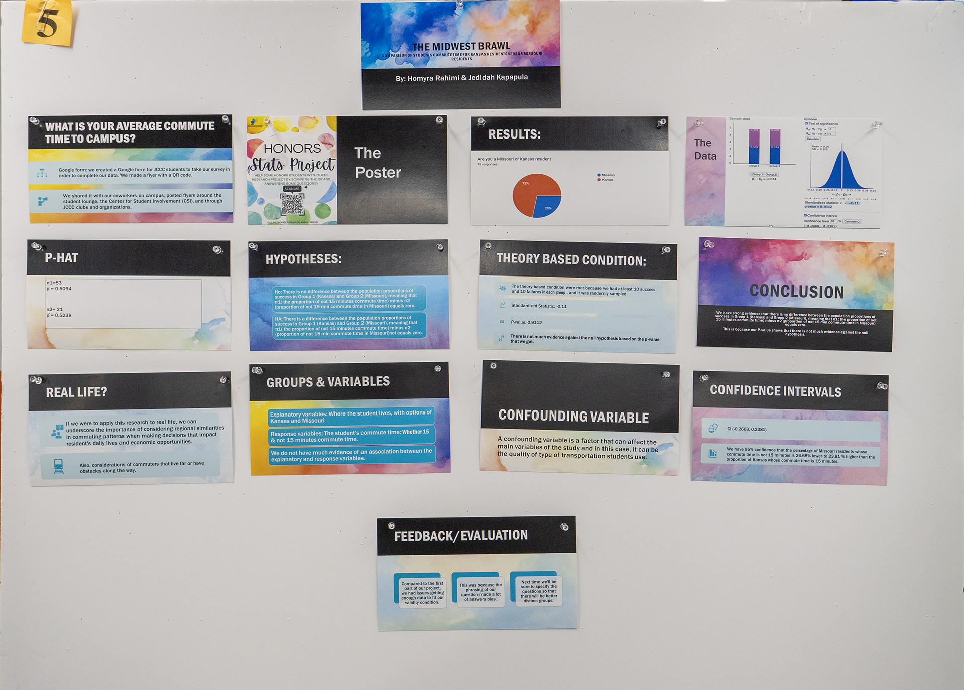 This research aims to compare the commute time between Kansas and Missouri residents here on campus, to see if they are either similar or the same, with the measure of 15 minutes being average. The commute time would be categorical being either 15 minutes or not (less or more). Understanding the comparison provides us with insight into potential disparities in access to education based on geographical location. Data for this study will be collected through a survey that will be advertised around campus.