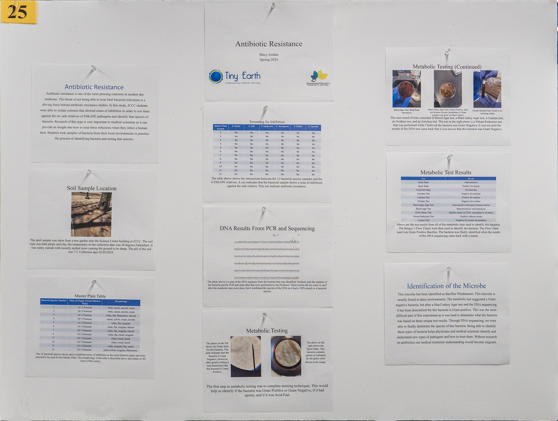 Antibiotic resistance is one of the most pressing concerns in modern day medicine. The threat of not being able to treat fatal bacterial infections is a driving force behind antibiotic resistance studies. In this study, JCCC students were able to isolate colonies that showed zones of inhibition in order to test them against the six safe relatives of ESKAPE pathogens. Students selected a soil sample from any local area of their choosing and documented the conditions in which the soil was found. Through serial dilution, the students were able grow several species of bacteria on an agar plate. Using proper aseptic technique, a master plate was formed using any species that showed a zone of inhibition. These were the species that were then tested against the six safe relatives. Once again, the goal was to find a zone of inhibition between the safe relative and the master plate species. This study shed light on the types of bacteria present in the local environment that may possess antibiotic resistance. Research of this type is very important to medical scientists as it can provide an insight into how to treat these infections when they infect a human host. The number of bacteria that show resistance to antibiotics within this study express the urgency in which antibiotic resistance research is needed.