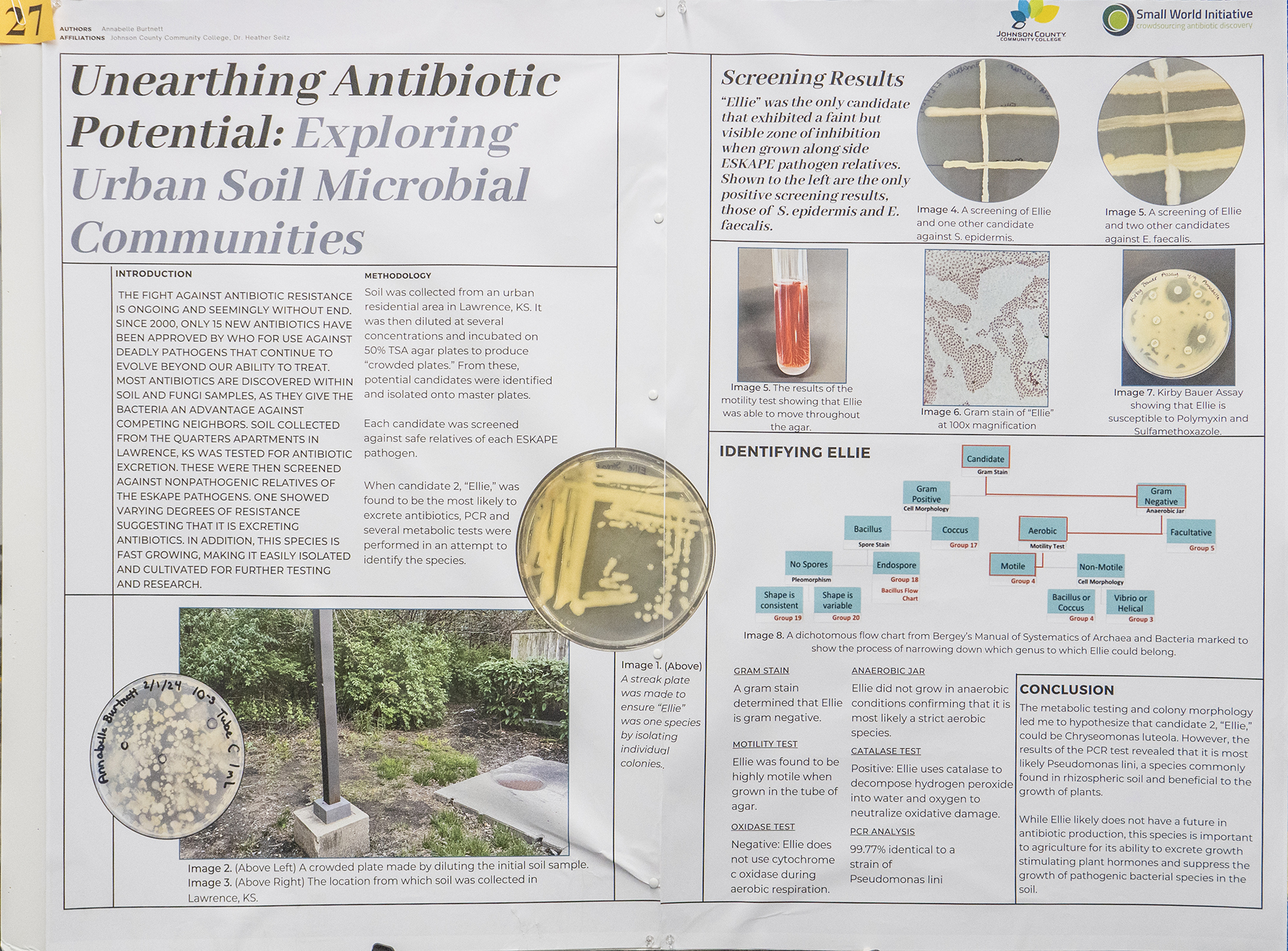 The fight against antibiotic resistance is ongoing and seemingly without end. Since 2000, only 15 new antibiotics have been approved by WHO for use against deadly pathogens that continue to evolve beyond our ability to treat. Most antibiotics are discovered within soil and fungi samples, as they give the bacteria an advantage against competing neighbors. Soil collected from The Quarters apartments in Lawrence, KS was diluted and grown in the lab resulting in 17 initial candidates for antibiotic excretion. These were then screened against the 6 nonpathogenic relatives of the ESKAPE pathogens. While most of the candidates failed to exhibit zones of inhibition when grown alongside the relatives, one showed varying degrees of resistance suggesting that it is excreting antibiotics. In addition, this species is fast growing, making it easily isolated and cultivated for further testing and research.