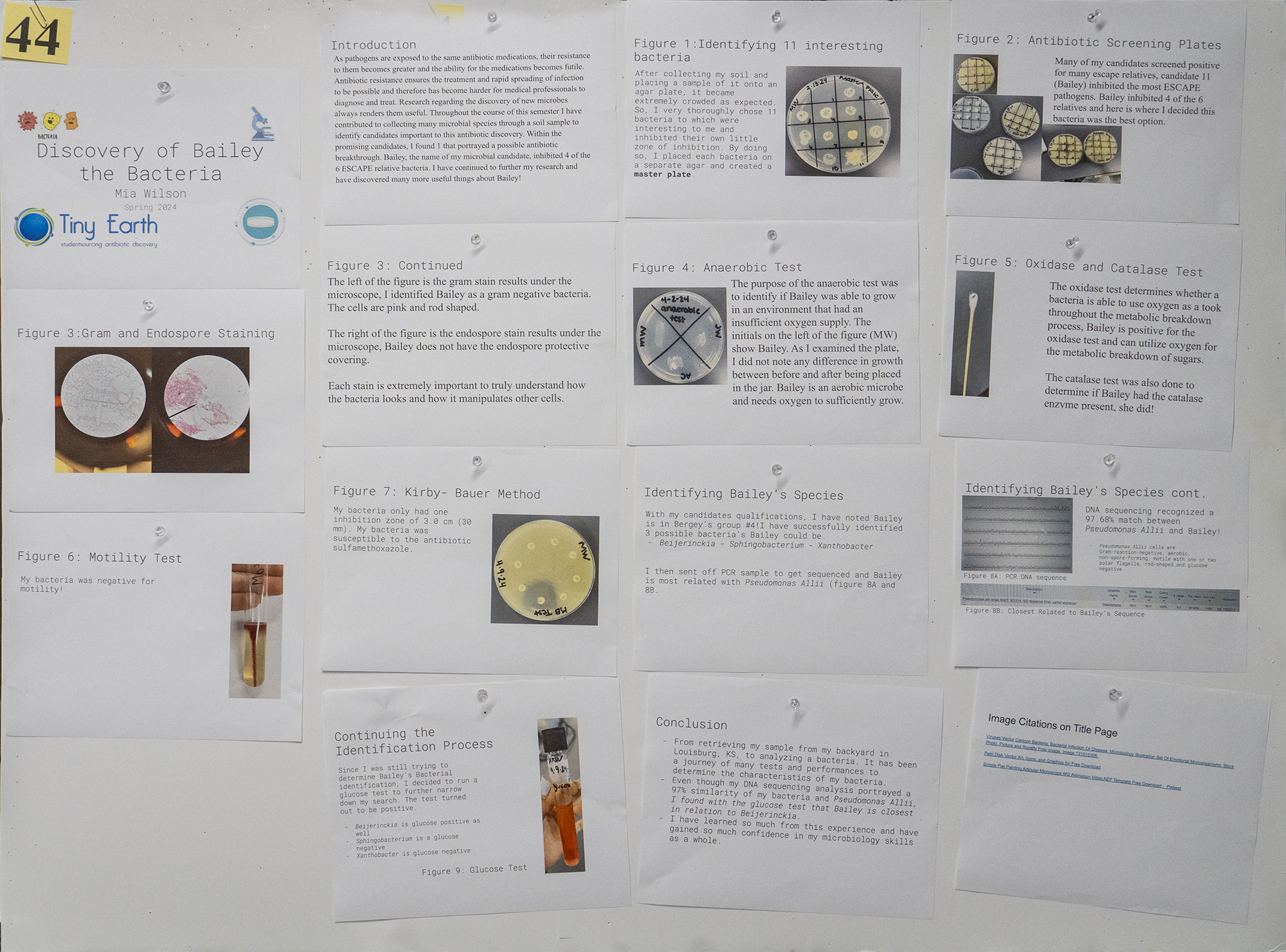 Germs, such as bacteria and fungi, are constantly developing the ability to resist drugs designed to fight them off. These microbes have adapted their environment and through mutations and selection have learned to resist the effects of the given antibiotic medication. As pathogens are exposed to the same antibiotic medications, their resistance to them becomes greater and the ability for the medications becomes futile. Antibiotic resistance ensures the treatment and rapid spreading of infection to be possible and therefore has become harder for medical professionals to diagnose and treat. Throughout many years, scientists have worked to uncover microbes that can lead to the discovery of new bacteria that further helps aid in medication development such as antibiotics. Research regarding the discovery of new microbes always renders them useful. Throughout the course of this semester our microbiology class has contributed to collecting many microbial species through a soil sample to identify candidates important to antibiotic screening. Through careful examination and dilution of the soil, I was able to discover 11 different microbial species. Within these promising candidates, I found 1 that portrayed a possible antibiotic breakthrough. Bailey, the name of my microbial candidate, inhibited 4 of the 6 ESCAPE relative bacteria.