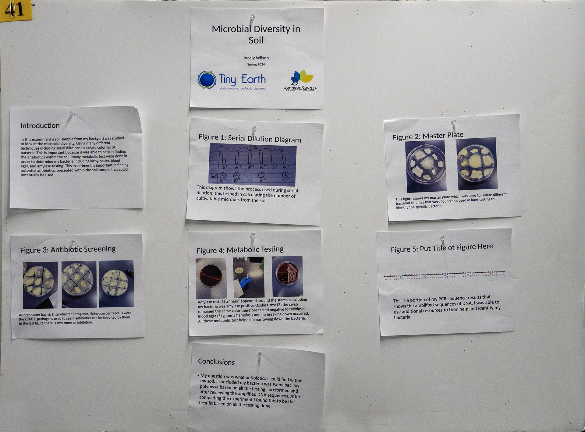 In this experiment microbial diversity was studied using soil from a residential backyard. Different bacteria was looked at within the soil but specifically the antibiotics within it. Many different techniques were used during this experiment. Serial dilution was done first to isolate microbial populations. A master plate was created as a way to organize the antibodies. ESKAPE pathogens were used for antibiotic screenings to see if antibiotics can inhibit safe relatives. Once zones of inhibition are found to determine the specific bacteria PCR is used to amplify sequences and then metabolic tests are done. These methods will help to find potential antibiotics within the soil.
