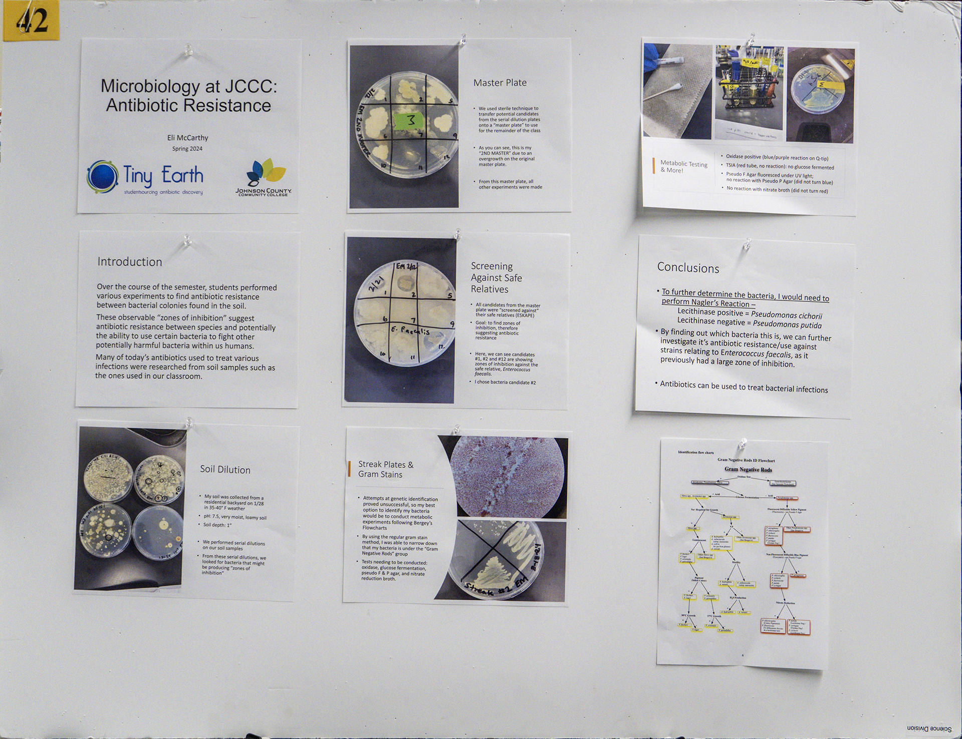 It all started with a bacterial swab off of the forgotten water bottle left in the back seat of my 2015 Chevrolet Cruze. After seeing the sheer diversity of bacteria on that agar plate, it was clear that this world is filled to the brim with life not seen by the naked eye. For the remainder of the semester, our class focused on learning various techniques to view, analyze, and compare microscopic bacteria found from individually-gathered soil samples. Using aseptic technique and serial dilution, it was possible to reduce and pick out specific colonies of bacteria from the soil and ultimately create a master plate of the colonies that appeared to form zones of inhibition. After comparing the bacterial colonies on the master plate to the provided “safe relatives”, we were able to more closely see these zones of inhibition (which suggested antibiotic resistance). This goes to show that even bacteria compete with each other for resources in the soil - what a strange and fascinating world in which we live!