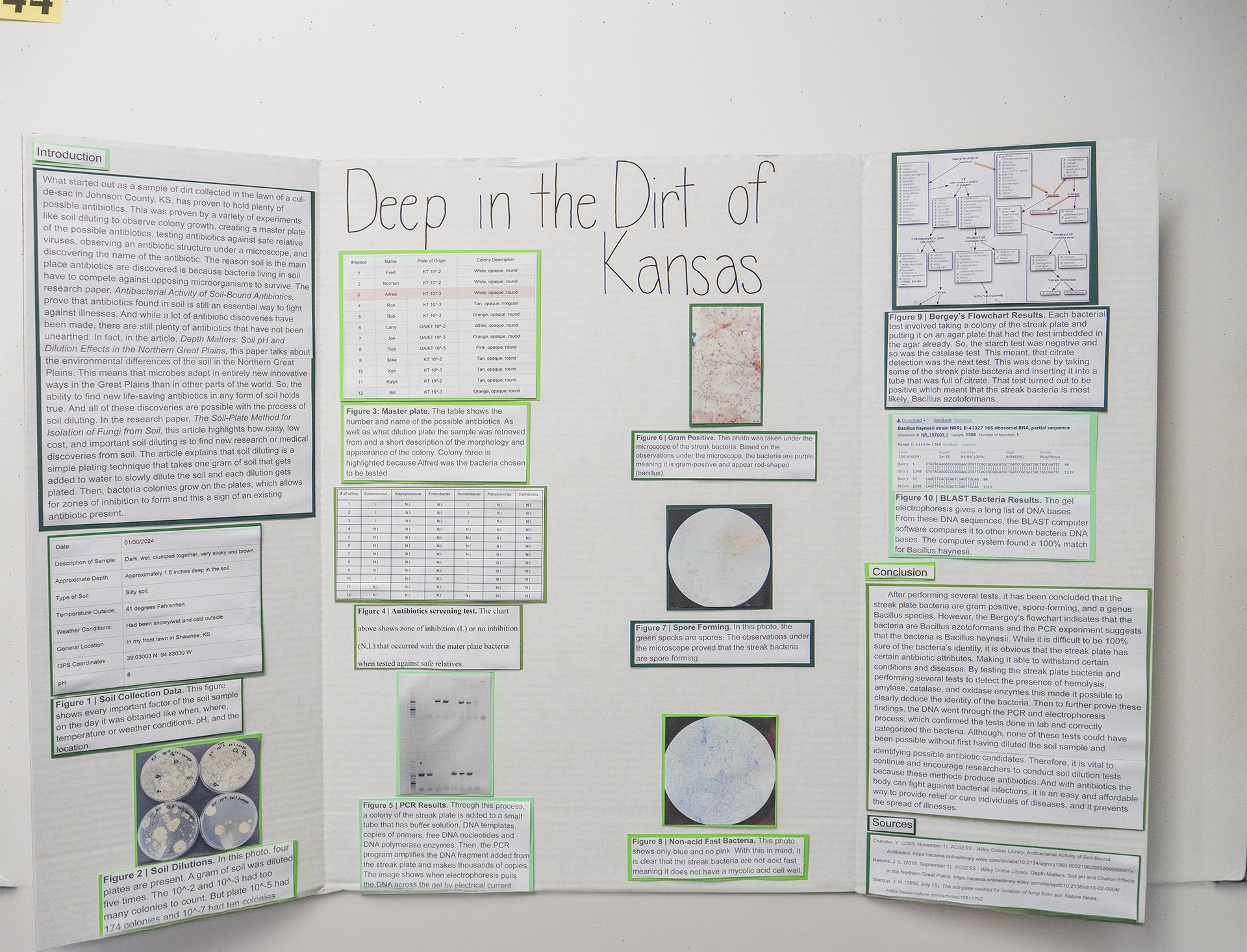 Soil has the largest amount of microorganisms that produce antibiotics. Discovering new antibiotics is huge in the scientific world, because antibiotics help give relief to symptoms, speed recovery time and stop the infection from spreading. Since the 1880s, scientists have been doing serial dilutions to test certain soil samples of possible antibiotic candidates. This has been successfully done by securing a soil sample, serial dilution, transferring possible candidates to a master plate, testing each candidate to a safe relative and creating a streak plate of best antibiotic candidate. After testing each candidate, it will become clearer how many or if there are any antibiotics present in the soil sample.