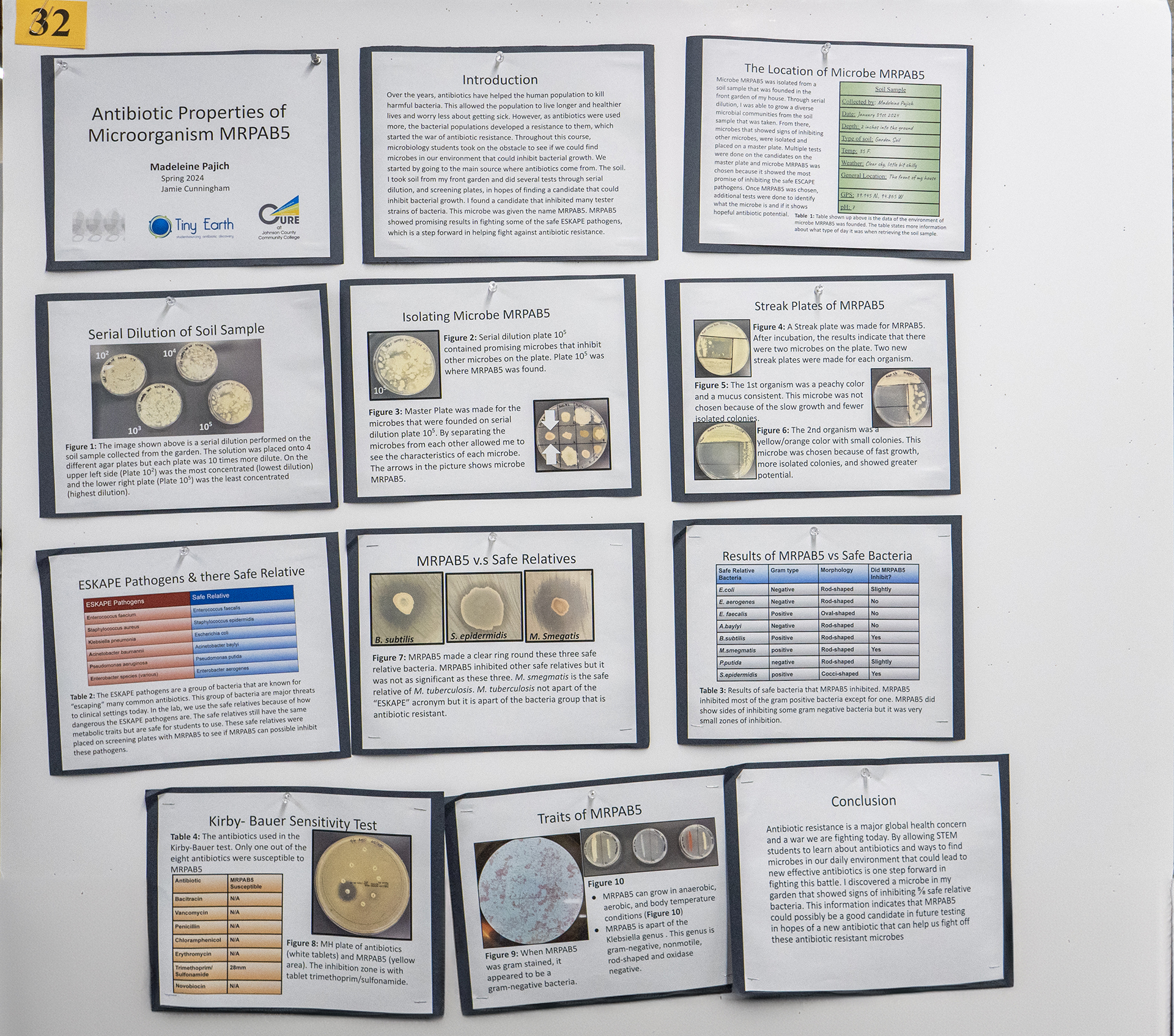 Over the years, antibiotics have helped the human population to kill harmful bacteria. This allowed the population to live longer and healthier lives and worry less about getting sick. However, as antibiotics were used more, the bacterial populations developed a resistance to them, which started the war of antibiotic resistance. Throughout this course, microbiology students took on the obstacle to see if we could find microbes in our environment that could inhibit bacterial growth. We started by going to the main source where antibiotics come from. The soil. I took soil from my front yard and did several tests through serial dilution, and screening plates, in hopes of finding a candidate that could inhibit bacterial growth. I found a candidate that inhibited many tester strains of bacteria. This microbe was given the name MRPAB5. MRPAB5 showed promising results in fighting some of the ESKAPE pathogens, which is a step forward in helping fight against antibiotic resistance.