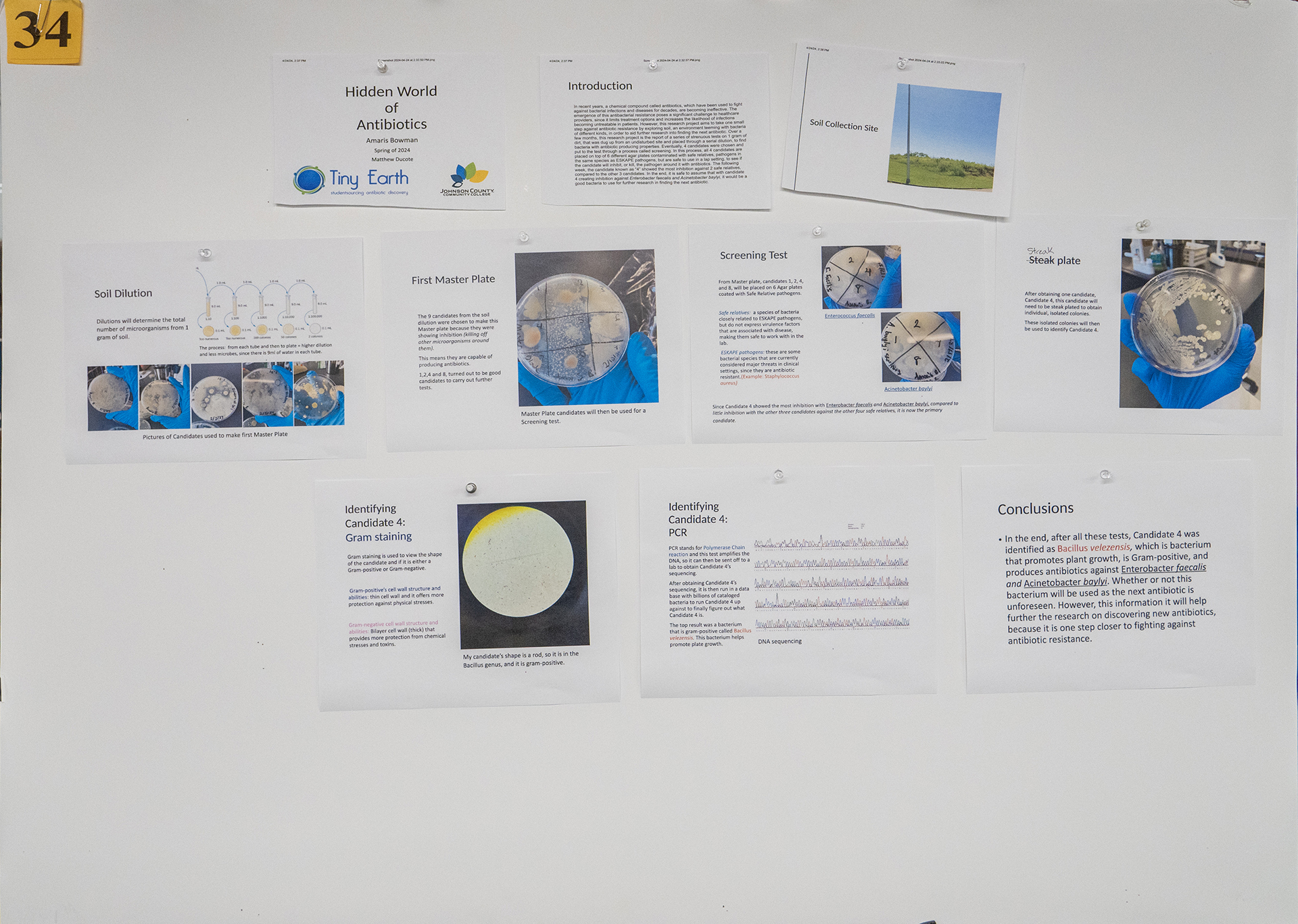 In recent years, chemical compounds called antibiotics, which have been used to fight against bacterial infections and diseases for decades, have become ineffective. The emergence of antibacterial resistance poses a significant challenge to healthcare providers, since it limits treatment options and increases the likelihood of infections becoming untreatable in patients. In order to address antibiotic resistance, this project aims to investigate soil, an environment that contains a variety of bacteria, in order to aid future research into the discovery of a new antibiotic. In this research project, a gram of dirt was collected from an undisturbed site and placed through a series of dilutions to detect bacteria that produce antibiotics. Through a process known as screening, four candidates were selected and put to the test. In this process, all 4 candidates are placed on top of 6 different agar plates contaminated with safe relatives, pathogens in the same species as ESKAPE pathogens, but are safe to use in a lap setting, to see if the candidate will inhibit, or kill, the pathogen around it with antibiotics. The following week, the candidate known as “4” showed the most inhibition against 2 safe relatives, compared to the other 3 candidates. In the end, it is safe to assume that with candidate 4 creating inhibition against Enterobacter faecalis and Acinetobacter baylyi, it would be a good candidate to use for further research in finding the next antibiotic.