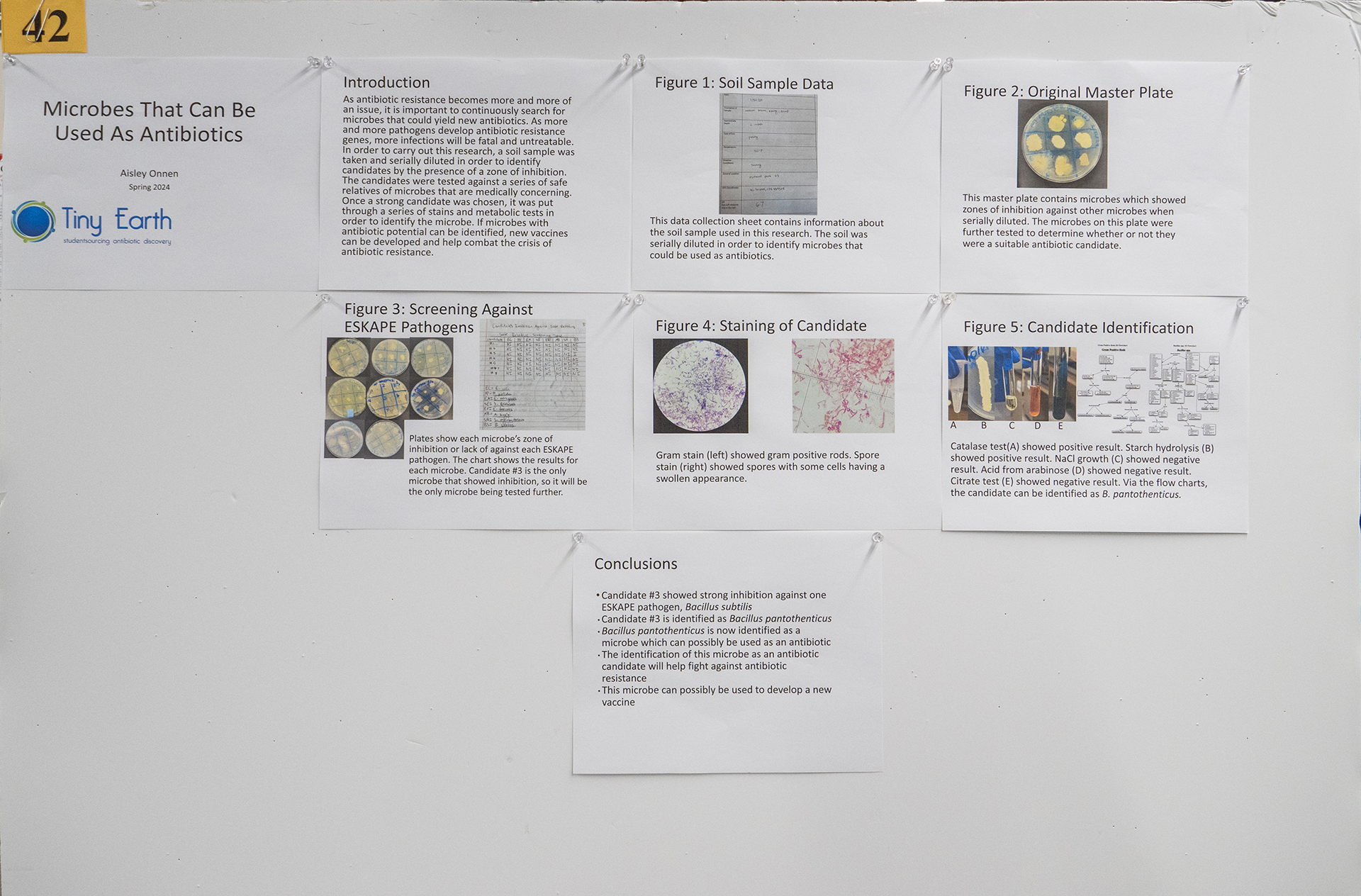 The goal of this research is to identify microbes that are potential antibiotic candidates from a soil sample from the Kansas City area. Many pathogenic microorganisms are developing resistance to the antibiotics that are used to fight infections today, so it is important to work to identify microbes which could be used to make new antibiotics. Soil is an excellent source for finding these microbes because it rarely contains pathogenic microorganisms and there are millions of microbes in each gram of soil. The soil sample used for this research was first serially diluted in order to identify microbes that inhibited the growth of others. After candidates were identified, they were transferred to a master plate. The candidates were then tested against safe relatives of pathogenic microorganisms that are medically concerning today. PCR and gel electrophoresis were used to genetically sequence the candidates that showed inhibition against the safe relatives in order to identify what species and genus they may belong to.