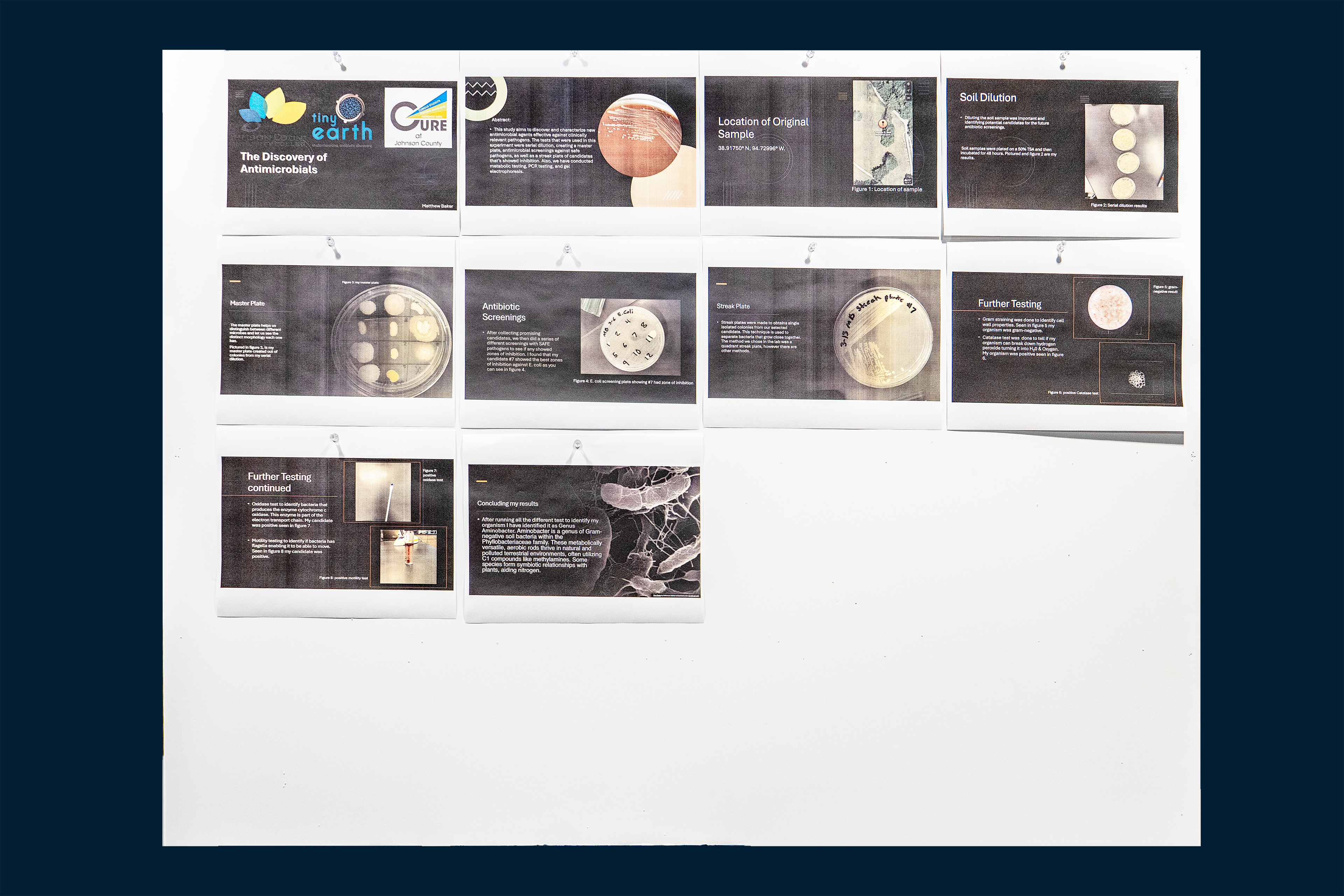 This study aims to discover and characterize new antimicrobial agents effective against clinically relevant pathogens. The tests that were used in this experiment were serial dilution, creating a master plate, antimicrobial screenings against safe pathogens, as well as a streak plate of candidates that’s showed inhibition. Also, we have conducted metabolic testing, PCR testing, and gel electrophoresis.