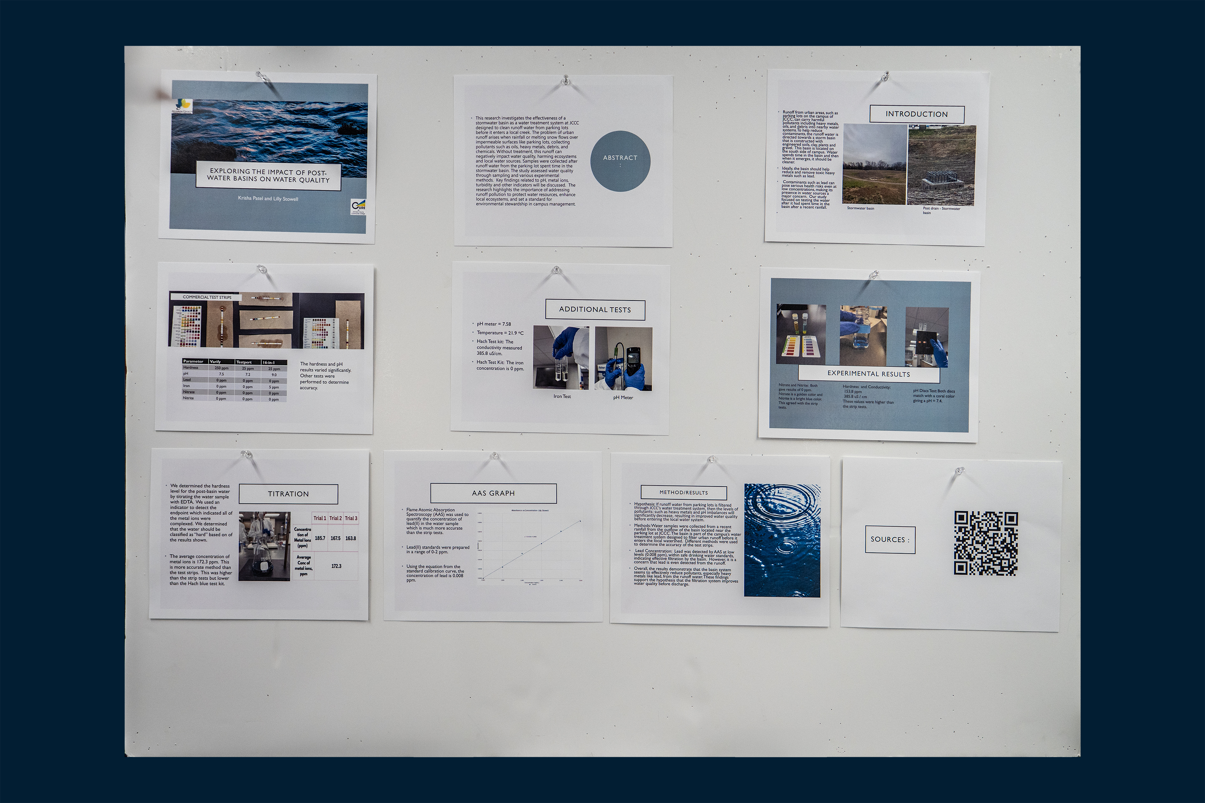 This research investigates the effectiveness of a water treatment system at Johnson County Community College (JCCC) designed to clean runoff water from the parking lots before it enters a local creek. The problem of urban runoff arises when rainfall or melting snow flows over impermeable surfaces like parking lots, collecting pollutants such as oils, heavy metals, debris, and chemicals. Without treatment, this runoff can negatively impact water quality, harming ecosystems and local water sources. Samples were collected after runoff water from the parking lot spent time in the stormwater basin. The study assessed water quality through sampling and various experimental methods. Key findings related to pH, metal ions, turbidity and other indicators will be discussed. The research highlights the importance of addressing runoff pollution to protect water resources, enhance local ecosystems, and set a standard for environmental stewardship in campus agreement.