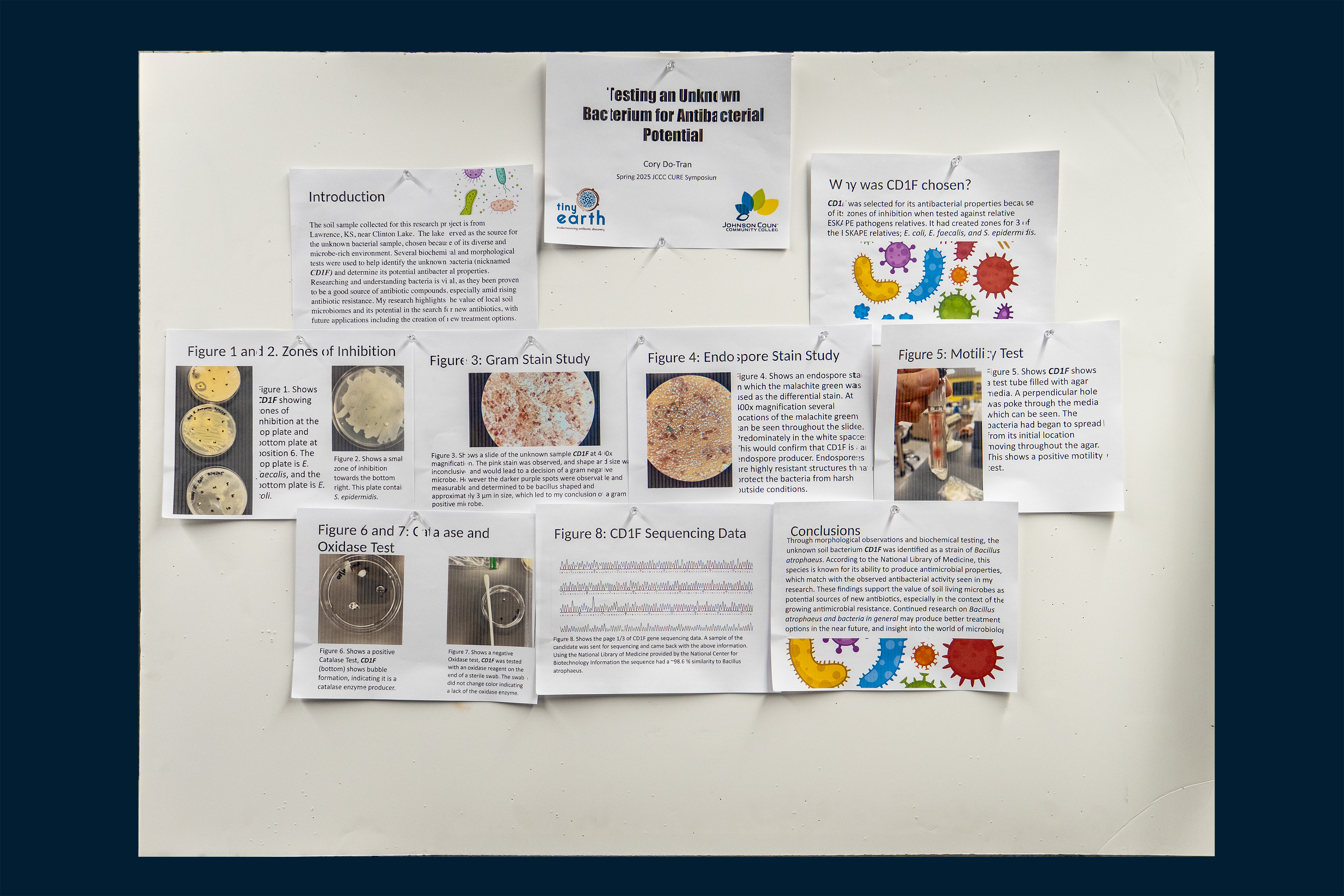 The goal of this research is to screen my soil sample collected from Clinton Lake near Lawrence, Kansas for potential microbes that have antibacterial properties. This will potentially help with the growing antibacterial resistance problem in health care. This soil sample was collected in late winter of 2025. This process consisted of dilution of the sample and isolating specific bacterial colonies which were then tested against the relative safe pathogens of common bacteria known to cause disease. Several microbe samples were determined to show antibacterial properties (CD1E and CD1F). Using genetic and metabolic approaches, I picked CD1F as the best candidate, and am excited to see what applications this bacteria can offer to the health care community.