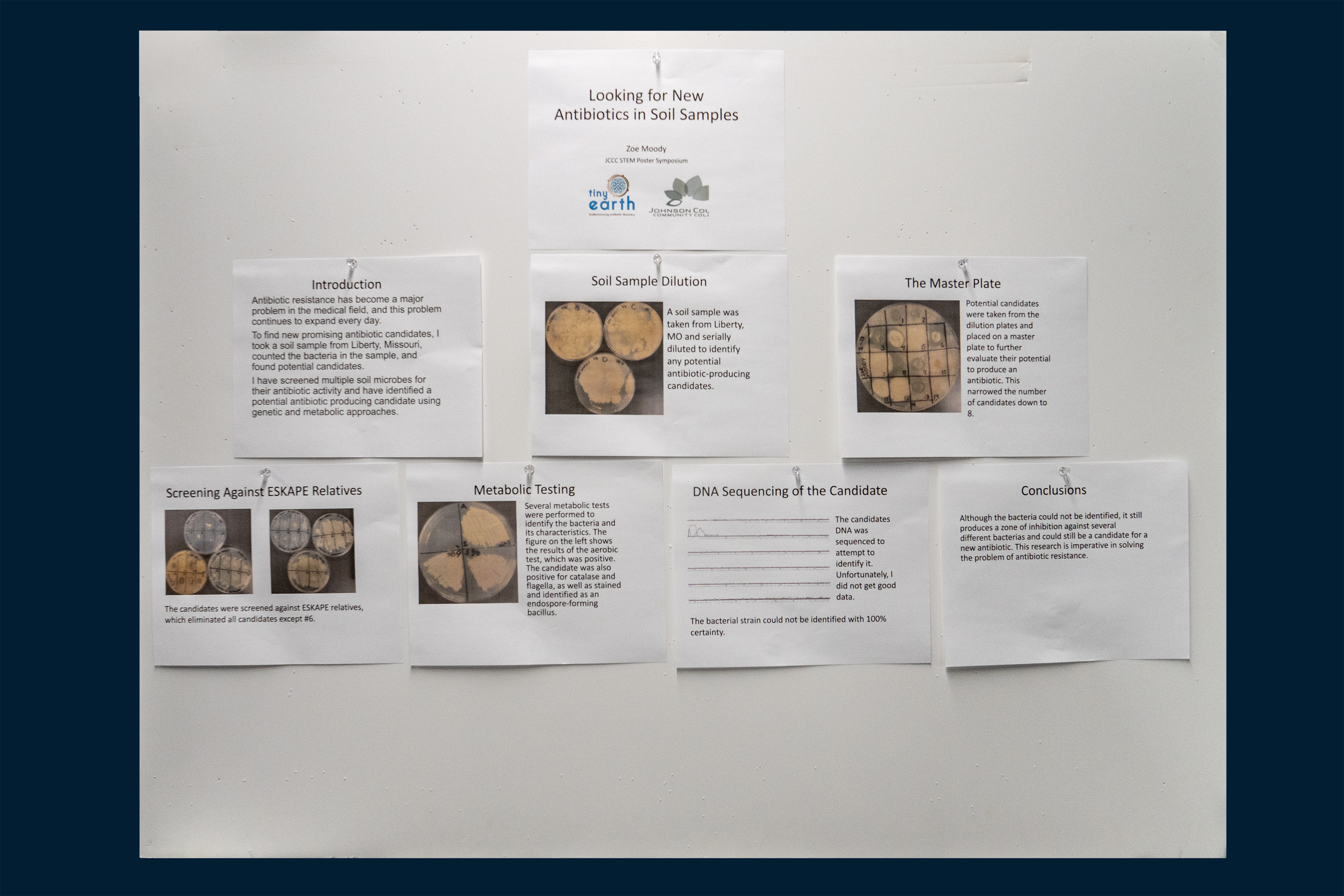 Antibiotic resistance has become a major problem in the medical field, and this problem continues to expand every day. To find new promising antibiotic candidates, I took a soil sample from Liberty, Missouri, counted the bacteria in the sample, and found potential candidates. I have screened multiple soil microbes for their antibiotic activity and have identified a potential antibiotic producing candidate using genetic and metabolic approaches. I am hopeful that this candidate will be shown to produce an antibiotic that can be used to treat infections that are resistant to known antibiotics.