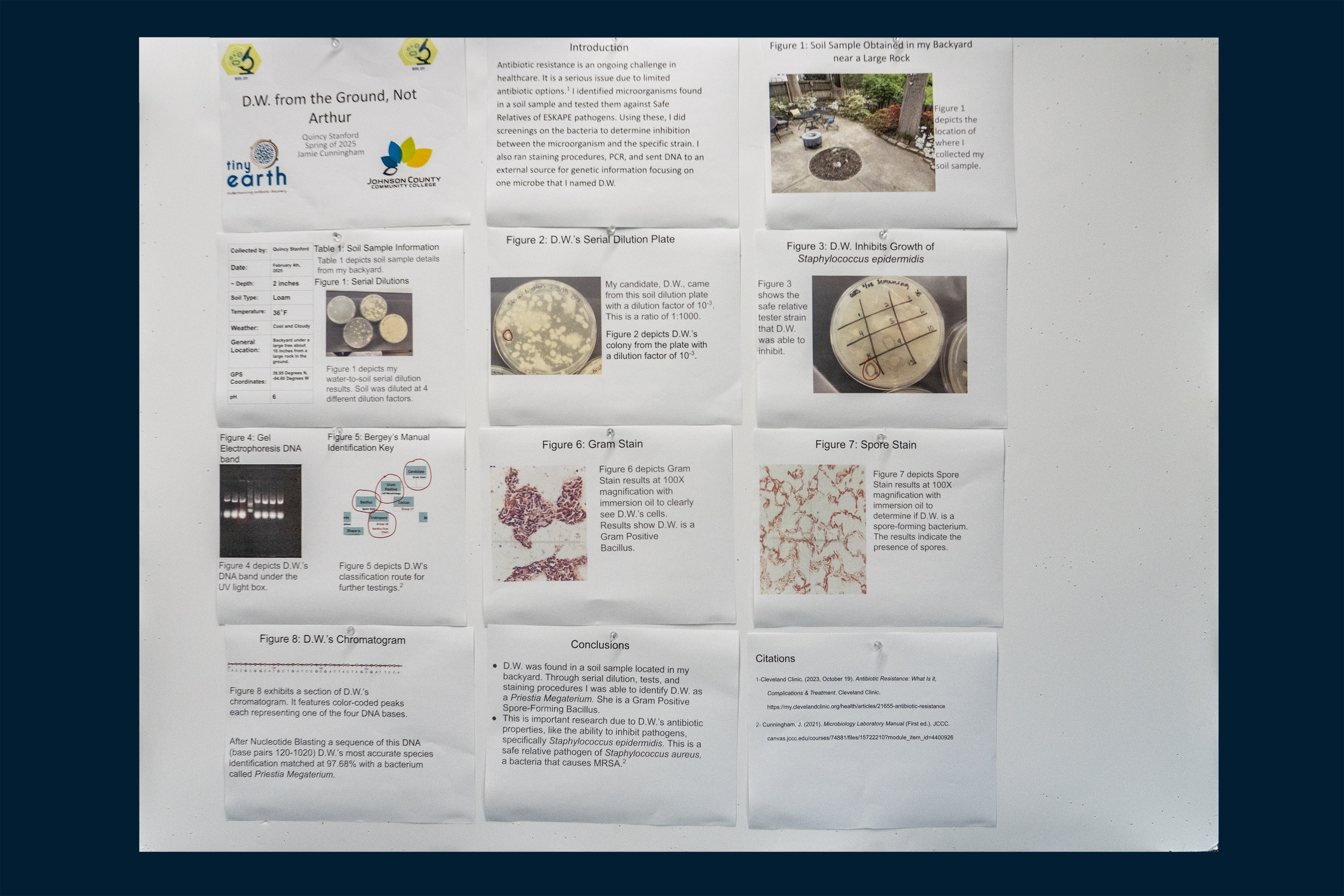 Antibiotic resistance is an extremely pressing challenge in modern medicine. It has taken a toll on the healthcare system for years, resulting in certain bacteria being resistant to the drugs themselves that are used to help people who are sick. The Tiny Earth Project is a promising solution to this problem. Through this project, students identify different microorganisms found in unique soil samples collected themselves. Using ESKAPE pathogens’ safe relatives, we can do screenings on the bacteria to determine inhibition between the microorganism and the specific strain. The microbe that grew from the soil I collected is named D.W. The soil containing D.W. was collected from my backyard under a large tree. Eleven other colonies grew from this sample. I chose D.W. because she developed a distinct zone of inhibition between herself and the safe relative strain called Staphylococcus epidermidis. A microbe like D.W. has the potential to be very beneficial in the process of the fight against antibiotic resistance