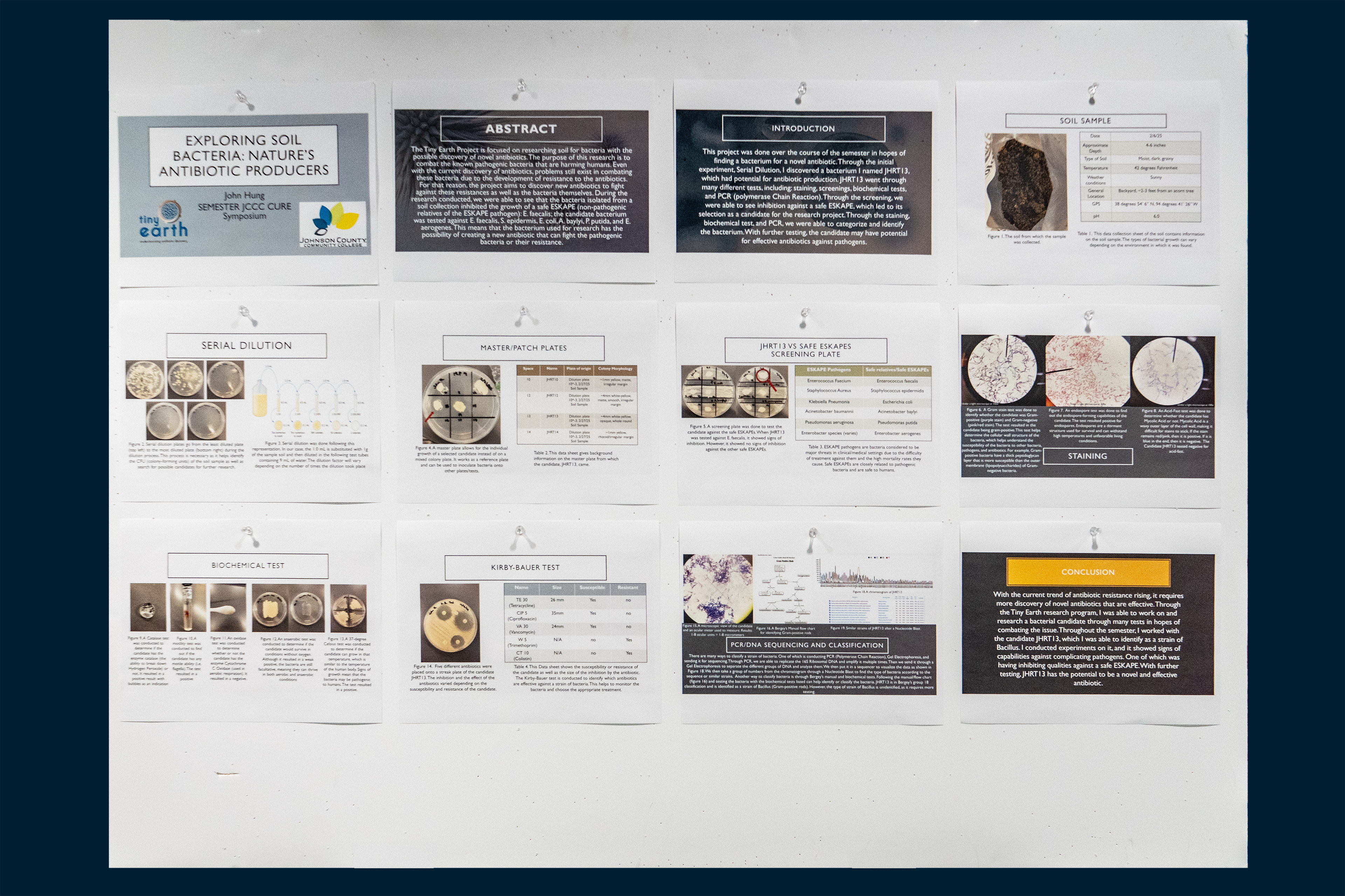 The Tiny Earth Project is focused on researching soil for bacteria with the possible discovery of novel antibiotics. The purpose of this research is to combat the known pathogenic bacteria that are harming humans. Even with the current discovery of antibiotics, problems still exist in combating these bacteria due to the building up of resistance to the antibiotics. For that reason, the project aims to discover new antibiotics to fight against these resistances as well as the bacteria itself. During the research conducted, we were able to see the bacteria isolated from a soil collection inhibit the growth of some safe ESKAPEs (non-pathogenic relatives of the ESKAPE pathogen); the candidate bacteria was tested against E.faecalis, S.epidermis, E.coli, A.baylyi, P.putida, and E.aerogenes. This means that the bacteria used for research has a possibility of creating a new antibiotic that can fight the pathogenic bacteria or their resistance.