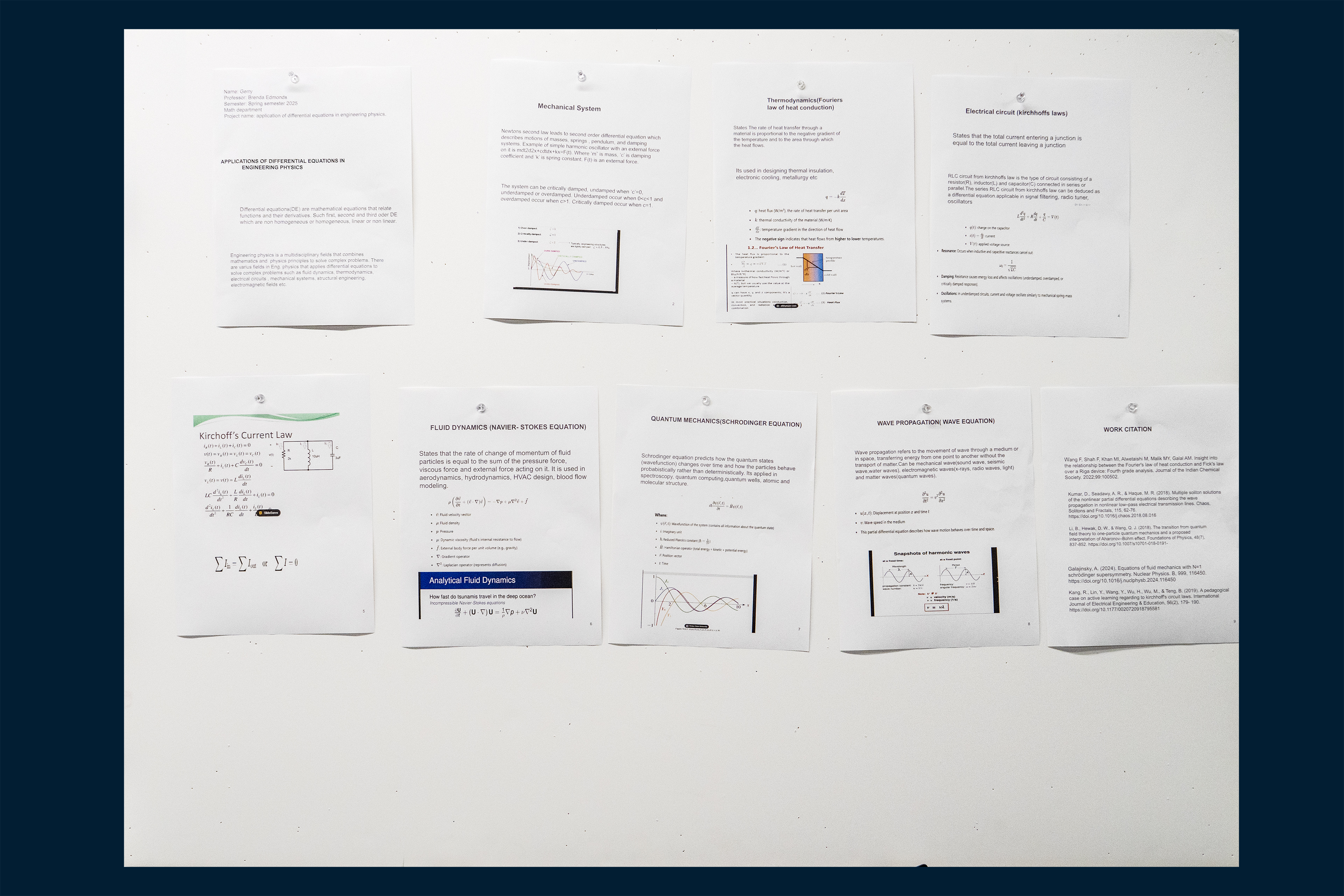 Differential equations are mathematical equations that relates a function and its derivatives with both dependent and independent variables. A differential equation can also be used to estimate or show how a quantity changes with respect to time. Various differential equations can be applied in physics bring a desirable output. so, the goal of the project is to show how various formulas of engineering physics or physics in general came from differential equation derivations.