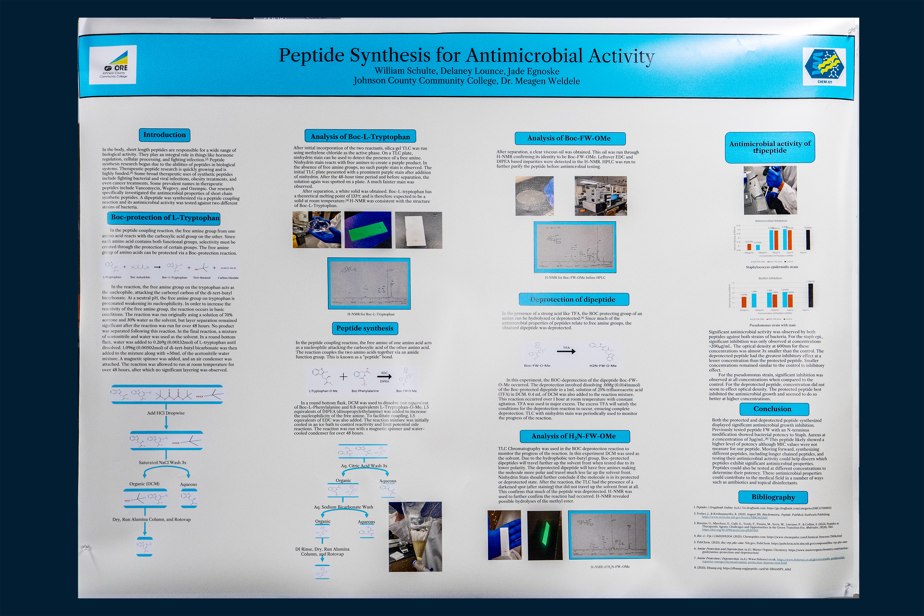 This experiment demonstrates the synthesis of a tripeptide containing L-tryptophan using Boc protection/deprotection strategies and evaluates its antimicrobial potential. This experiment was done in three phases. Boc protection of L-tryptophan’s amine group Using Boc-anhydride. Acid mediated deprotection, and EDC mediated coupling to create a peptide bond.