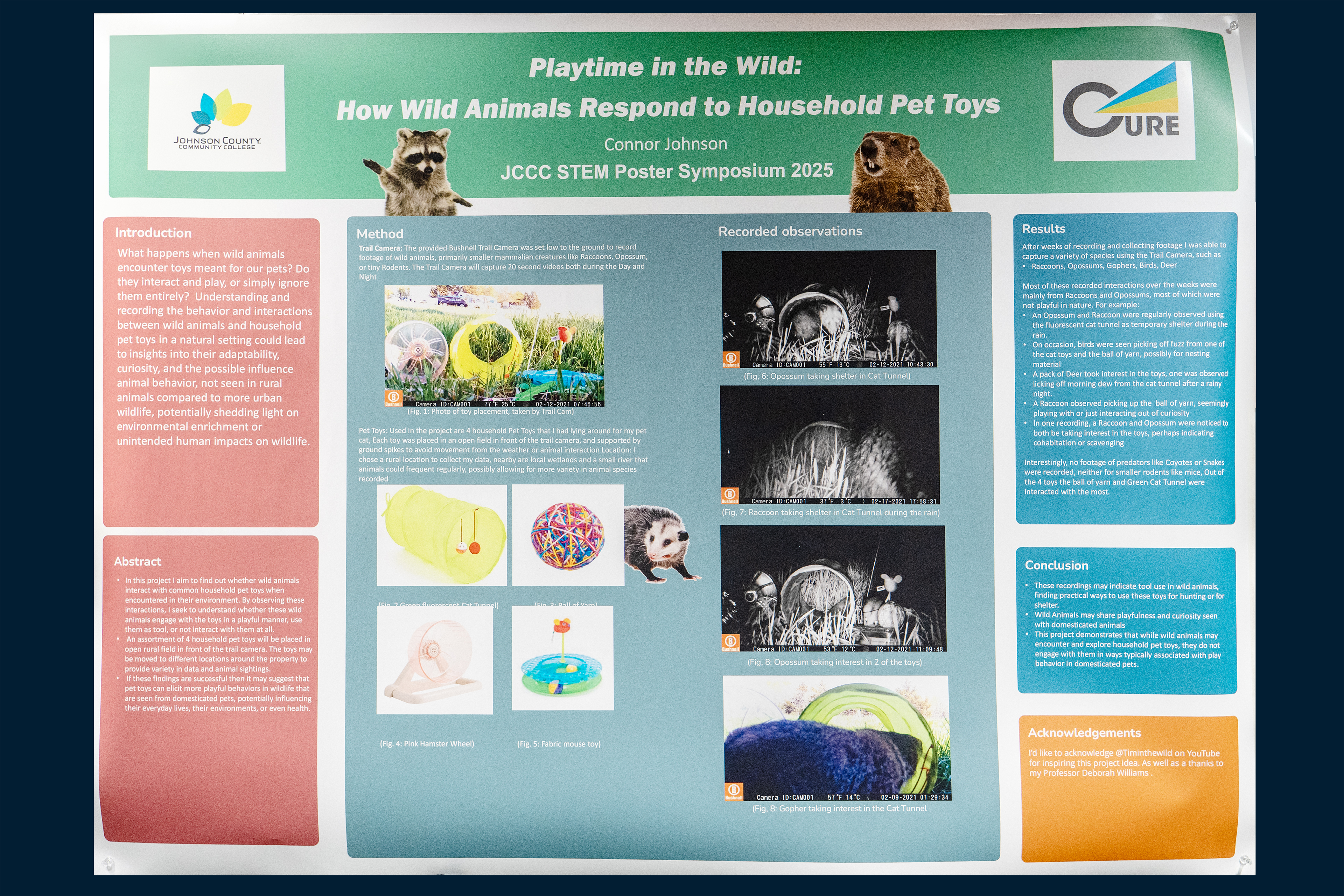 In this project I aim to find out whether wild animals interact with common household pet toys when encountered in their environment. By observing these interactions, I seek to understand whether these wild animals engage with the toys in a playful manner, use them as tool, or not interact with them at all. An assortment of 4–5 household pet toys will be placed in open rural field in front of the trail camera. The toys will be rotated and rearranged periodically to provide variety. If these findings are successful then it may suggest that pet toys can elicit more playful behaviors in wildlife that are seen from domesticated pets, potentially influencing their everyday lives, their environments, or even health.