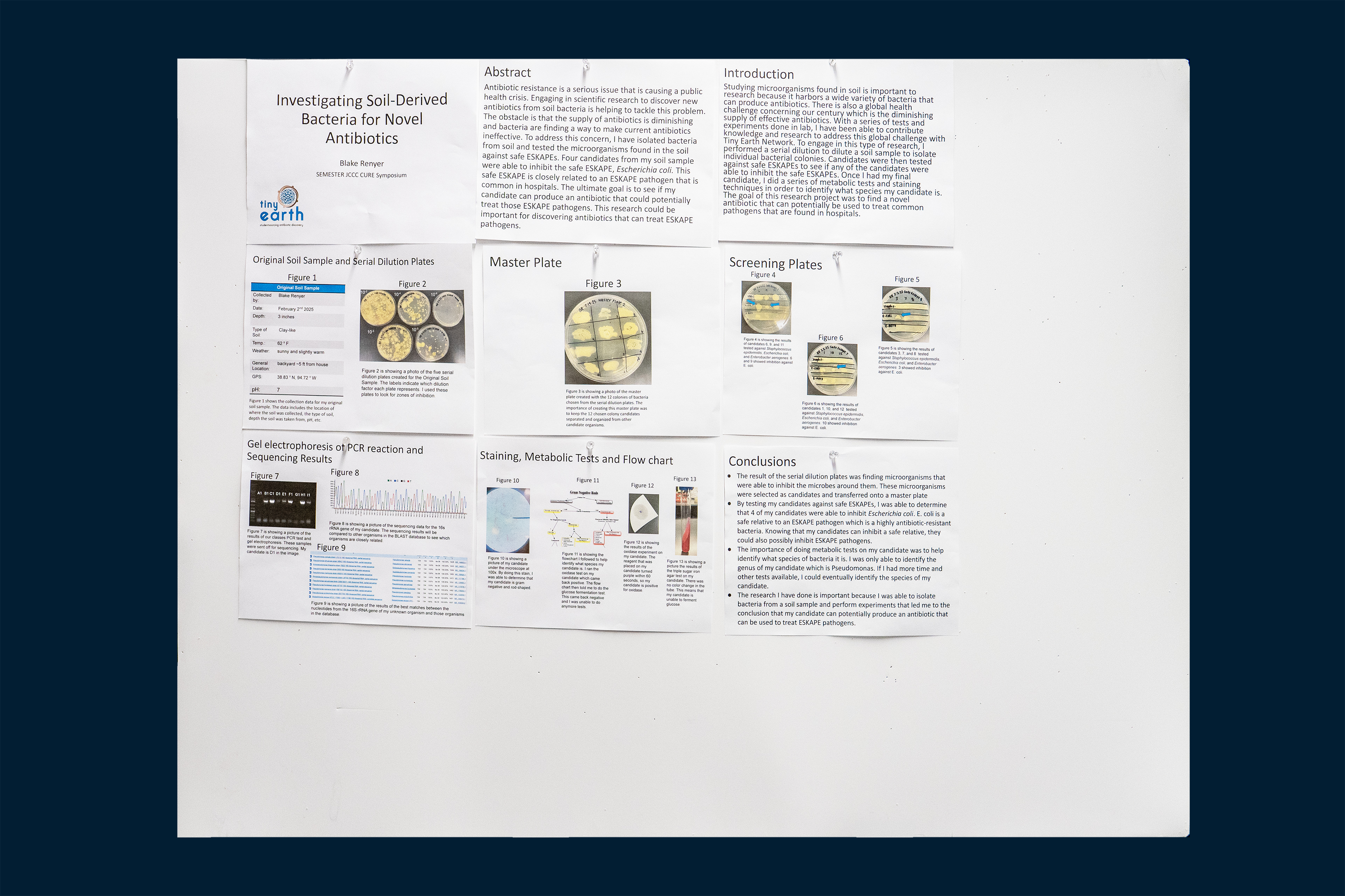 Antibiotic resistance is a serious issue that is causing a public health crisis. Engaging in scientific research to discover new antibiotics from soil bacteria is helping to tackle this problem. The obstacle is that the supply of antibiotics is diminishing and bacteria are finding a way to make current antibiotics ineffective. If the same antibiotics are being used to treat a bacterial infection, the bacteria can start to resist the antibiotic and it won’t help to treat the infection anymore. To address this concern, I have isolated bacteria from soil and tested the microorganisms found in the soil against safe ESKAPEs. Four candidates from my soil sample were able to inhibit the safe ESKAPE, Escherichia coli. This safe ESKAPE is closely related to an ESKAPE pathogen that is common in hospitals. The ultimate goal is to see if my candidate can produce an antibiotic that can treat those ESKAPE pathogens. This research could be important for discovering antibiotics that can treat ESKAPE pathogens.